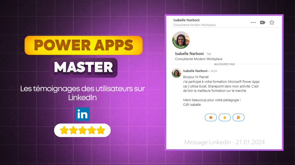 👑 Power Apps Master, la Masterclass numéro #1 en France sur Power Apps avec +4200 personnes formées ! 👑Ma méthode est simple, mais efficace !
